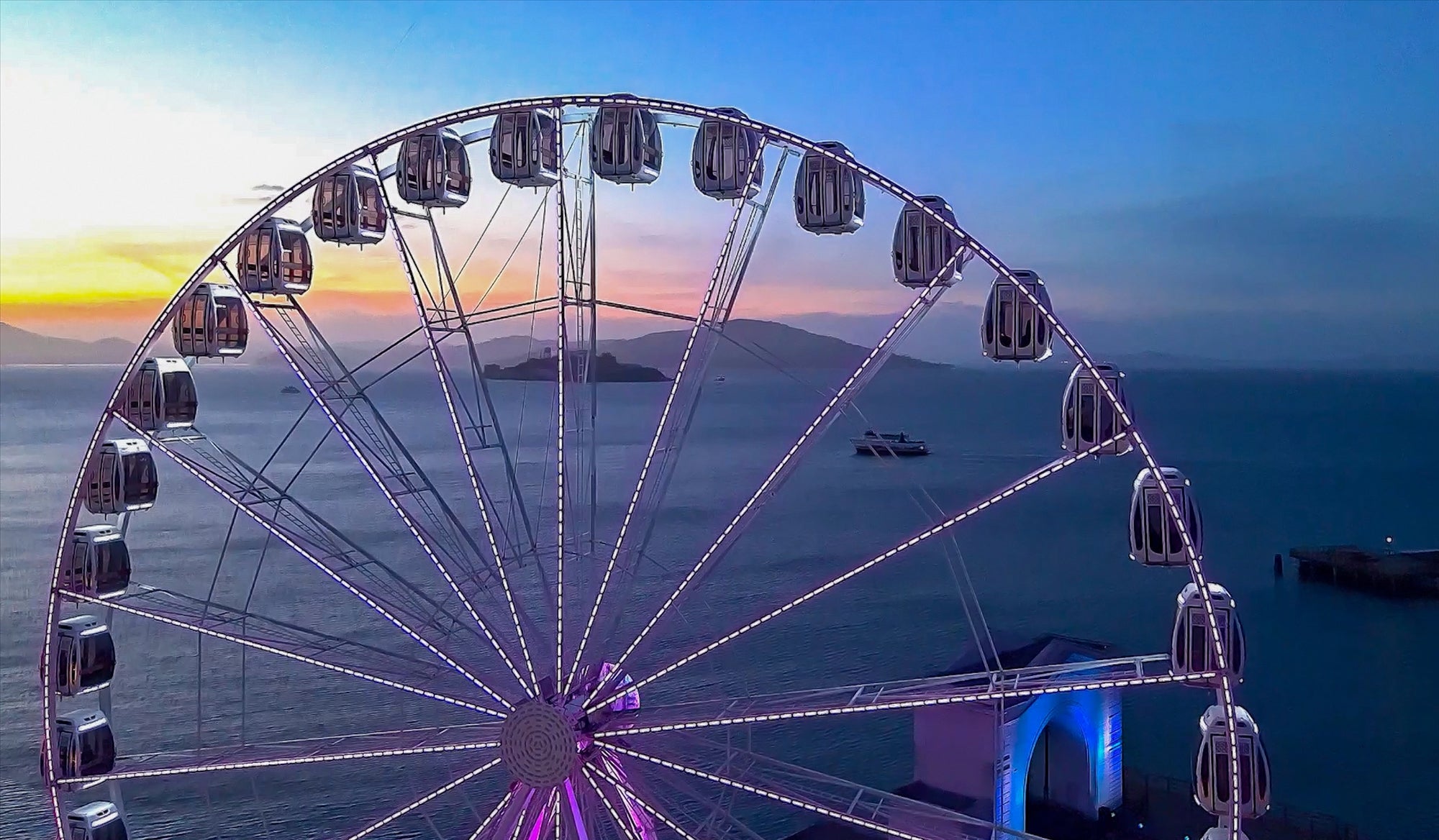 Ride the SkyStar Wheel at Fisherman’s Wharf, a 150-foot San Francisco Ferris wheel with 36 climate-controlled gondolas, each seating up to six people. Take in bird's-eye views of the Golden Gate Bridge, Bay Bridge, city skyline, Sausalito, and Alcatraz Island from high above the Barbary Coast Trail.